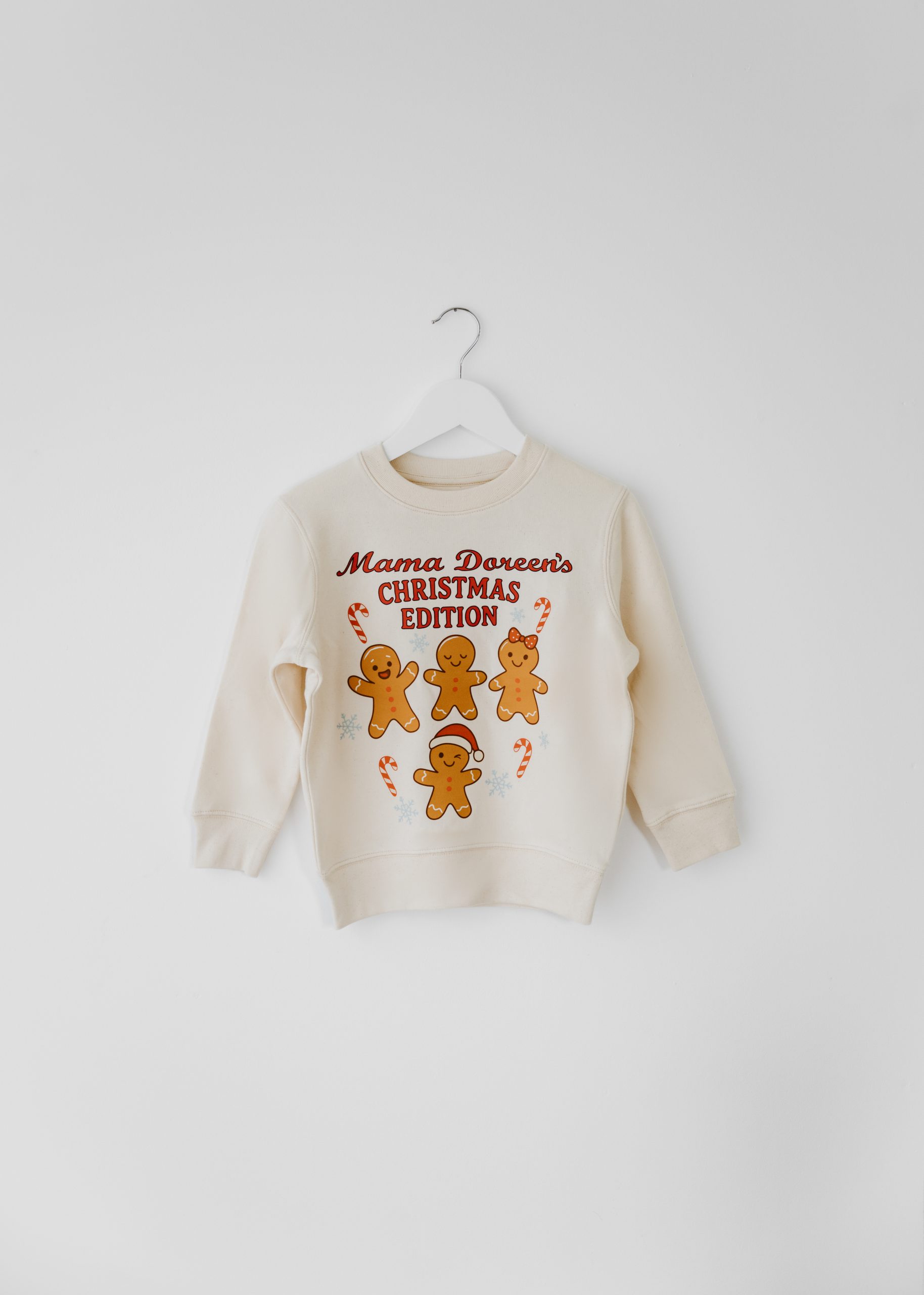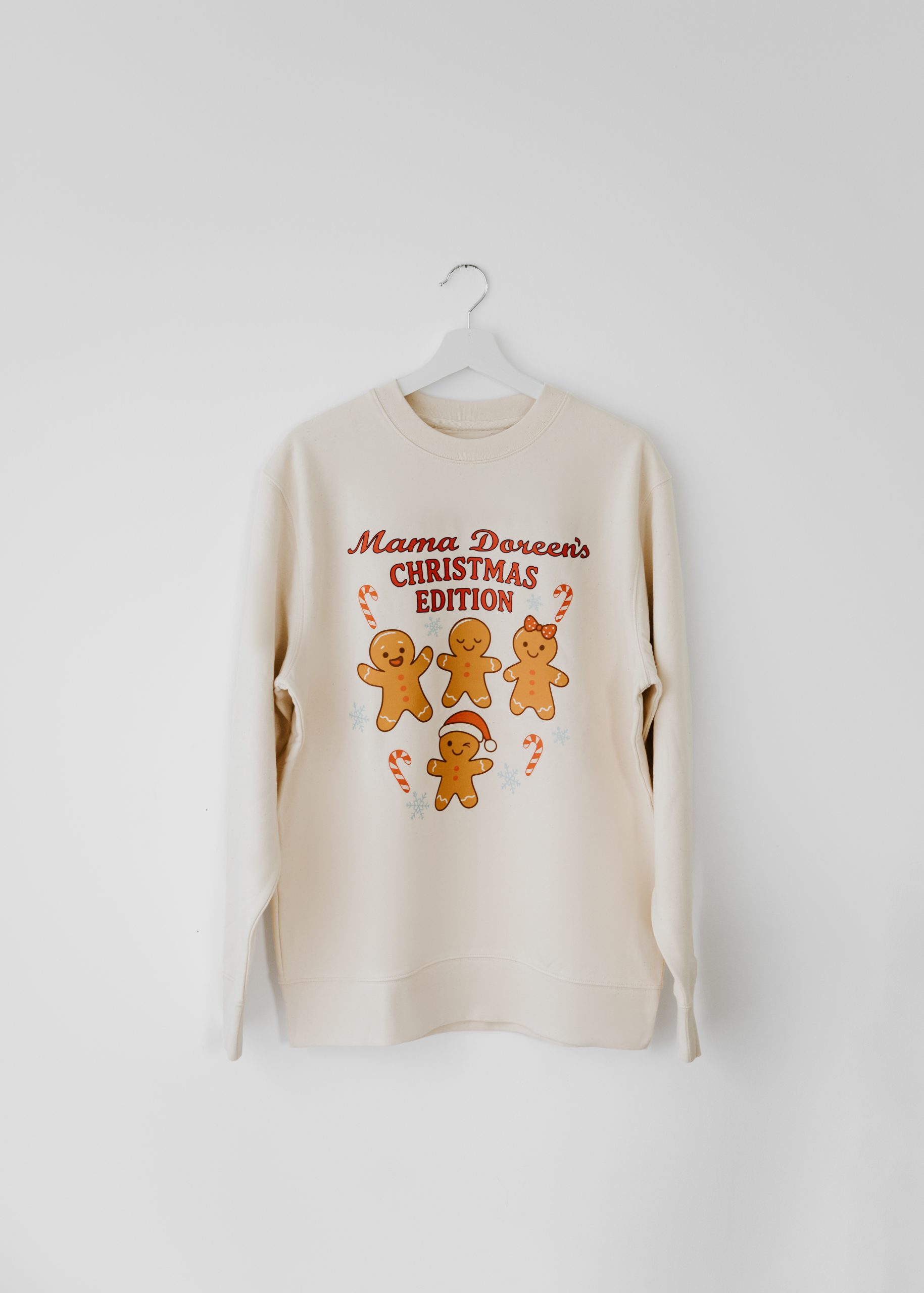 Get wrapped up in festive sweetness with our Gingerbread Christmas Sweatshirt, the cosiest way to celebrate the season. Featuring an exclusive Mama Doreen’s gingerbread design, this soft, snuggly sweatshirt brings all the charm of Christmas baking to your winter wardrobe.